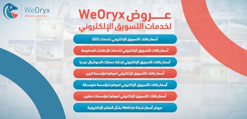 من خلال خبرتها في السوق المصرية والسوق الخليجية والعربية، تعهدت شركة WeOryx بتقديم أعلى مستوى من المهنية والاحترافية والإبداع لمختلف أنواع خدماتها التسويقية عبر الإنترنت، فهي من أفضل الشركات المتخصصة في المجال، وتمكنت الشركة عبر سنوات من العمل الشاق والجاد من أن تحقق نجاحات كبيرة، كما استطاعت تكوين شراكات قوية مع أهم وأشهر العلامات التجارية المعتمدة، ومن ضمن هذه الشراكات: التعاون مع شركة مشروعك لدراسات الجدوى والتطوير الاقتصادي والإداري، ومن هنا؛ قررت شركتنا أن تعلن عن عروض الأسعار لخدمات التسويق الإلكتروني، فهي تتميز بأسعارها الملائمة لمختلف فئات وشرائح العملاء على مستوى الوطن العربي، وتهدف من ذلك، إلى تعزيز التعاون مع العملاء الدائمين وكسب ثقة العملاء المحتملين، علاوة على تخطيطها لتوسيع قاعدة العملاء عربيًا وعالميًا، وفي هذه المقال، سنوضح بشيء من التفصيل، أسعار باقات التسويق الإلكتروني لخدمات: تحسين محركات البحث الـ (SEO)، وخدمات الإعلانات المدفوعة، وإدارة حسابات السوشيال ميديا، وخدمات المواقع التعريفية للمؤسسات الكبيرة والمتوسطة والصغيرة، وخدمات المتاجر لمختلف أحجام المؤسسات.