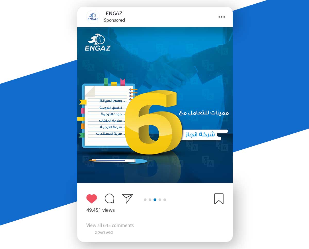 أيضاً قامت WeOryx بالتسويق لـ شركة إنجاز على مواقع التواصل الاجتماعي ويشمل التسويق :